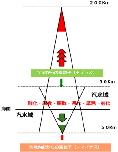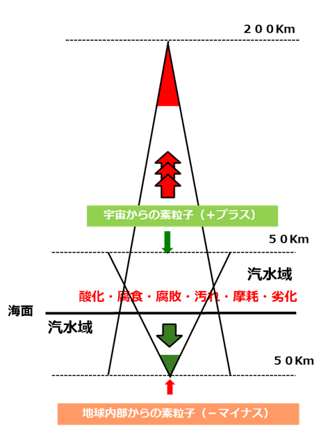 - その目的は、自然と人間全ての環境バランスを改善するこです。「環境バランス」とは、宇宙と地球が接する空間域と地球内部の地殻域には超粒子が存在し、宇宙からは「プラス素粒子」地殻域からは「マイナス素粒子」が放出され、両者は長い年月、安定を維持して来ました。